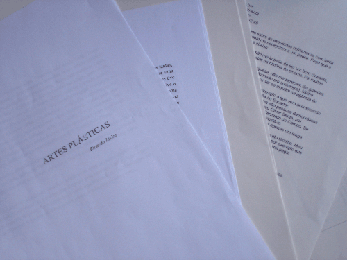 Dois textos recentes de Ricardo Lísias, com naturezas semelhantes – não se trata exatamente de dois livros – chegaram pelo correio, recentemente, um depois do outro. O primeiro deles, Fisiologia da Solidão, uma plaquete editada pela Espectro Editorial, parece um pequeno ensaio sobre processo de criação, mas deve ser, digamos com certa prudência, um conto; e o segundo, Artes Plásticas, enviado pelo próprio autor, que chegou dentro de um envelope azul, impresso em folhas de formato A4, todas soltas – há sempre o risco de embaralhar a sequência e remontar a narrativa – com um selo, um carimbo, um cartaz, um timbre, uma notícia de jornal, enfim, tudotambém deve formar um conto.